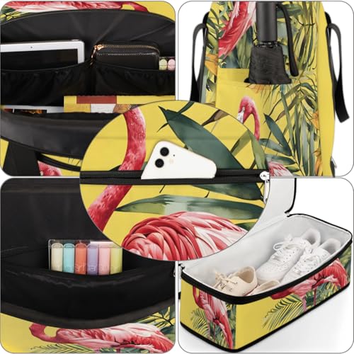 Travel Duffel Bags Flamingo Palm Leaf Foldable Weekender Bags for Women with Shoes Compartment Waterproof & Tear Resistant Carry on Overnight Luggage Duffel Bag Shoulder Sports Tote Bag,A-768 5