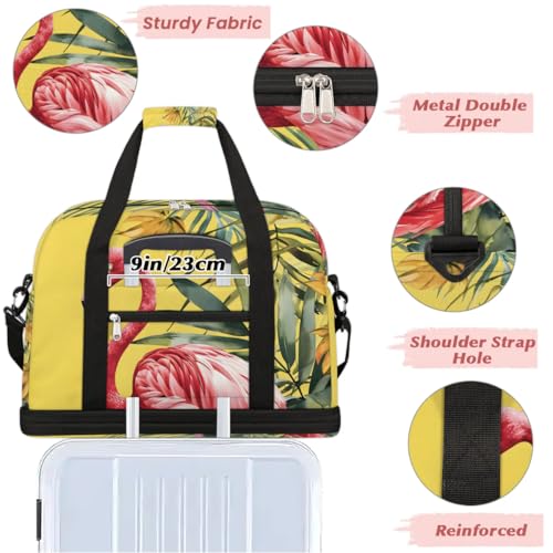 Travel Duffel Bags Flamingo Palm Leaf Foldable Weekender Bags for Women with Shoes Compartment Waterproof & Tear Resistant Carry on Overnight Luggage Duffel Bag Shoulder Sports Tote Bag,A-768 1