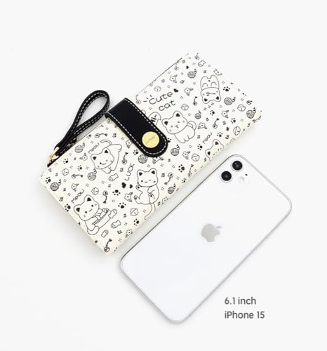 JHTPSLR Cute Cat Wallet for Women Teen Girls Large Credit Card Holder with Wristlet Strap Zipper Coin Pocket PU Leather Wallets Cutecore Accessories Cutecore Stuff (Pink) 6