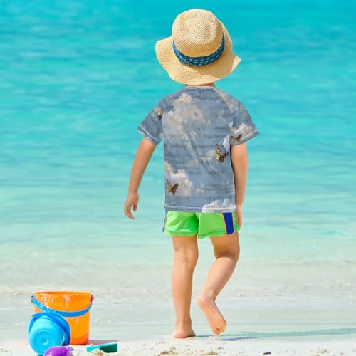 Boys Short Sleeve T-Shirts Butterfly Note Music Rashguard Kids Swim Shirts Sun UPF 50+ 5