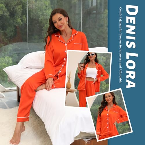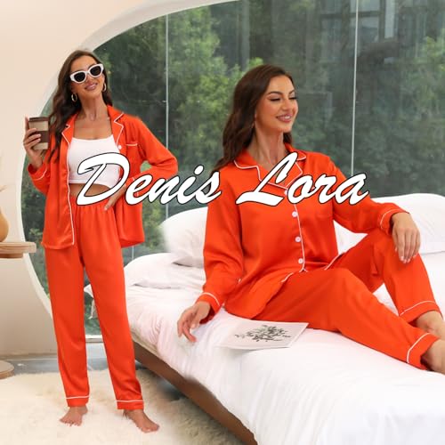 • atin Pajama Set for Women:Our Satin Pjs for Women Set is made of high quality Double side Satin material which is cute soft comfy and breathable,vibrant colors and true to size,it’s a Must Buy everyday wardrobe-essentials.