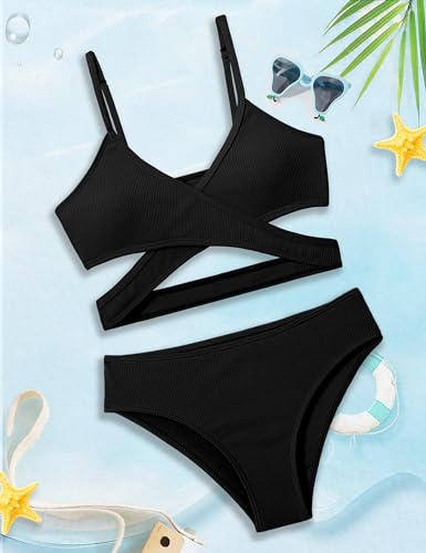 Girls Swimsuit Bikini Set,Criss Cross Bathing Suits for Girl Two Piece Solid Color Girls' Swimwear for 7-16 Years 1