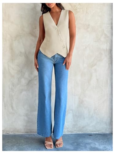 Why Choose MakeMeChic Women's Vest Tops Y2K Trendy V Neck Button Down Asymmetrical Blazer Vest Waistcoat Jacket?