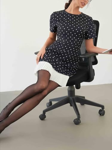 More information about Polka Dot Mini Dress for Women Round Neck Short Sleeve Pleated Hem Mini Dress for Office Summer Outfit 2025